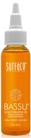 Hydrating oil for normal to coarse hair. Surface's Bassu Gold Hydrating Oil intensifies shine, color and condition. Argan Oil, Babassu Oil and Color Vita Complex penetrate, restore and intensify natural shine while providing hydration, protection and the ultimate antioxidant color lock.