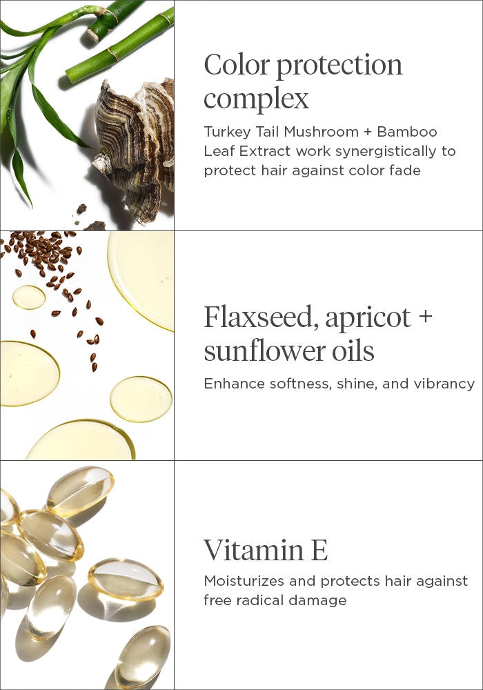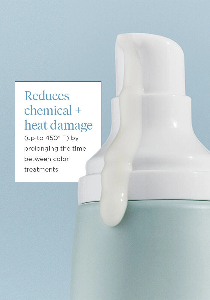 Prime, protect, and prolong hair color. A leave-in styling primer that shields hair from heat and environmental damage, helping to decrease the impact of color fade and extend the time needed between color treatments. 97% naturally derived.
