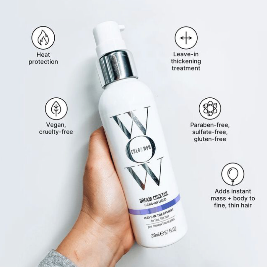 Leave-in thickening, volumizing treatment for fine, thin hair. Potent, leave-in supplement bonds a 3-d carb-based mesh to hair’s surface, fattening up fine, limp strands. Specially formulated for thin, flat, limp color-treated hair.