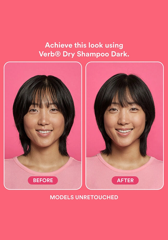 Verb Dry Shampoo Dark refreshes hair, extends style and boosts body. Powered by rice starch to absorb oil and odors, while cleansing hair, this formula is designed to disappear in darker hair colors and leave hair feeling clean. Now in a longer-lasting size.