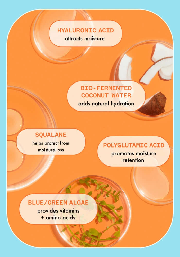 - Bio-fermented coconut water: contains various electrolytes to add natural hydration to hair.