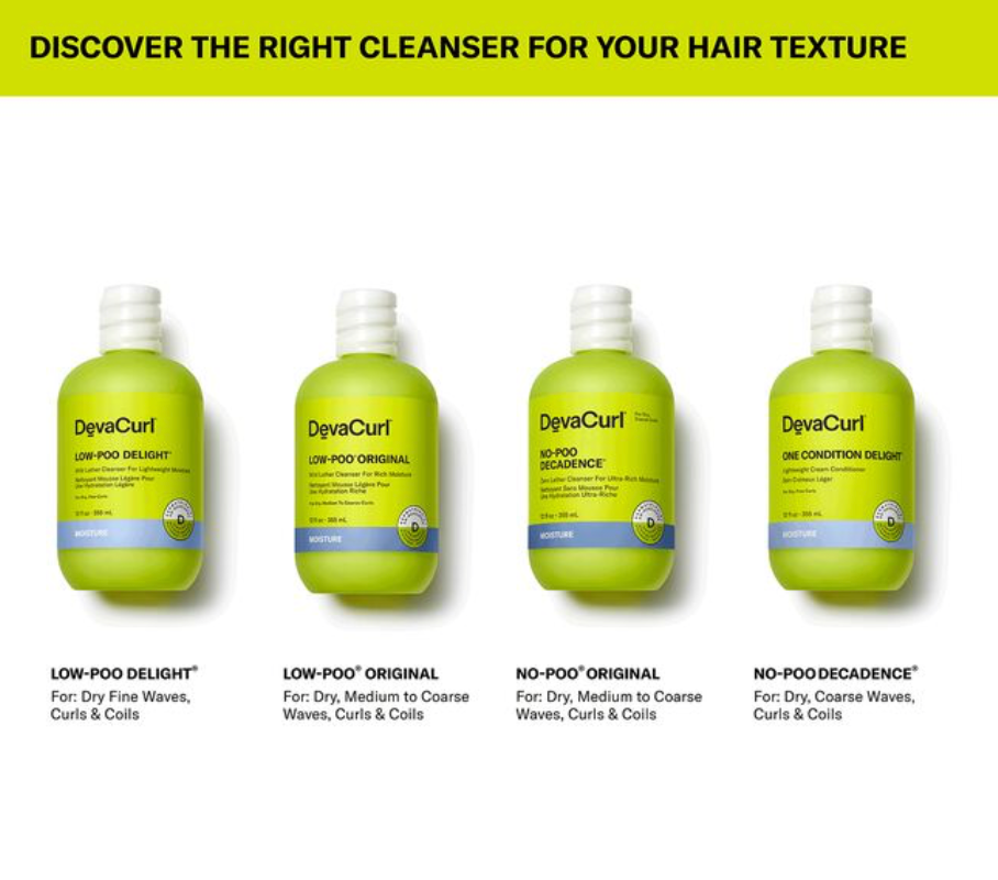 If you have dry, fine curls, Low-Poo Delight, a mild lather cleanser for lightweight moisture is recommended. If you have dry, medium to coarse curls, No-Poo Original or Low-Poo Original, both with a rich moisture preserving blend is recommended.