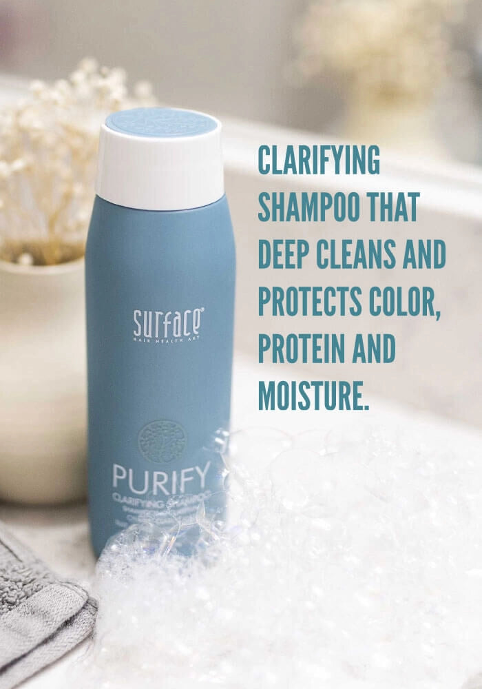 Surface's Purifying Shampoo features natural cleansers and specific chelators to cleanse unwanted minerals, chlorine and build up while leaving color, protein and moisture.