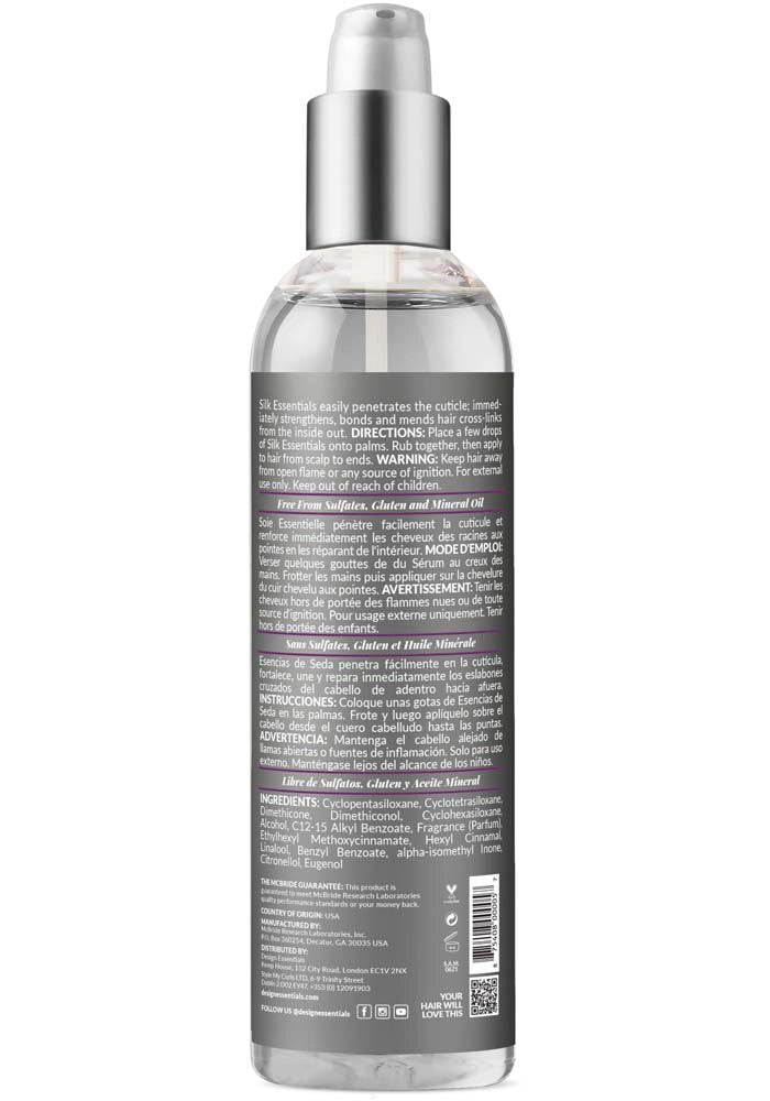Design Essentials Silk Essentials Strengthening Serum is a lightweight strengthening and smoothing serum that easily penetrates the cuticle and locks in moisture during heat styling, leaving hair shiny and full of body.
