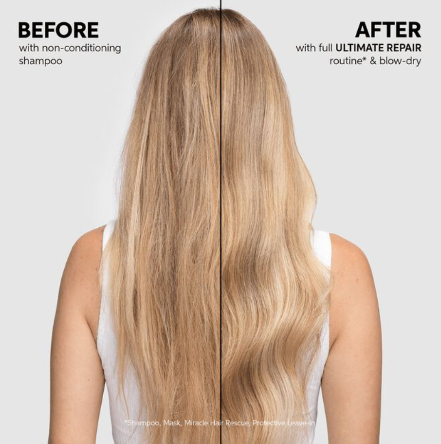 Ultimate Repair Mask uses AHA to rebuilds bonds inside, Omega-9 replenishes hair outside. Intense conditioning. Visibly reduces frizz. For Ultimate Repair results follow the full routine: use daily Shampoo, Conditioner or Mask and Miracle Hair Rescue, 1x per week or 2-3x per week for damaged hair.