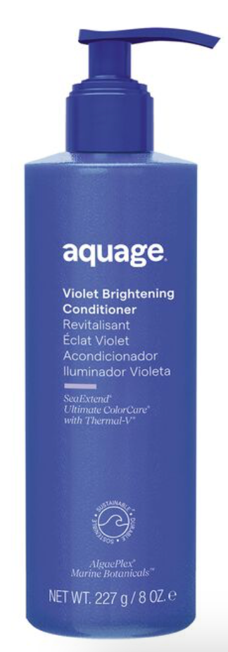 Aquage Violet Brightening Conditioner brightens and illuminates blonde, lightened, and highlighted hair.